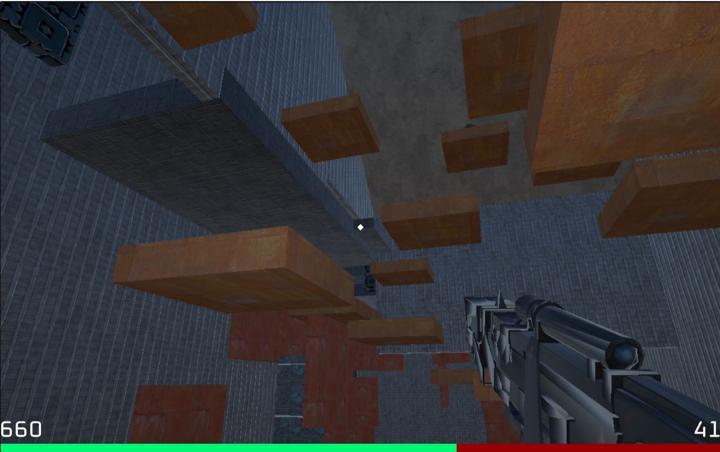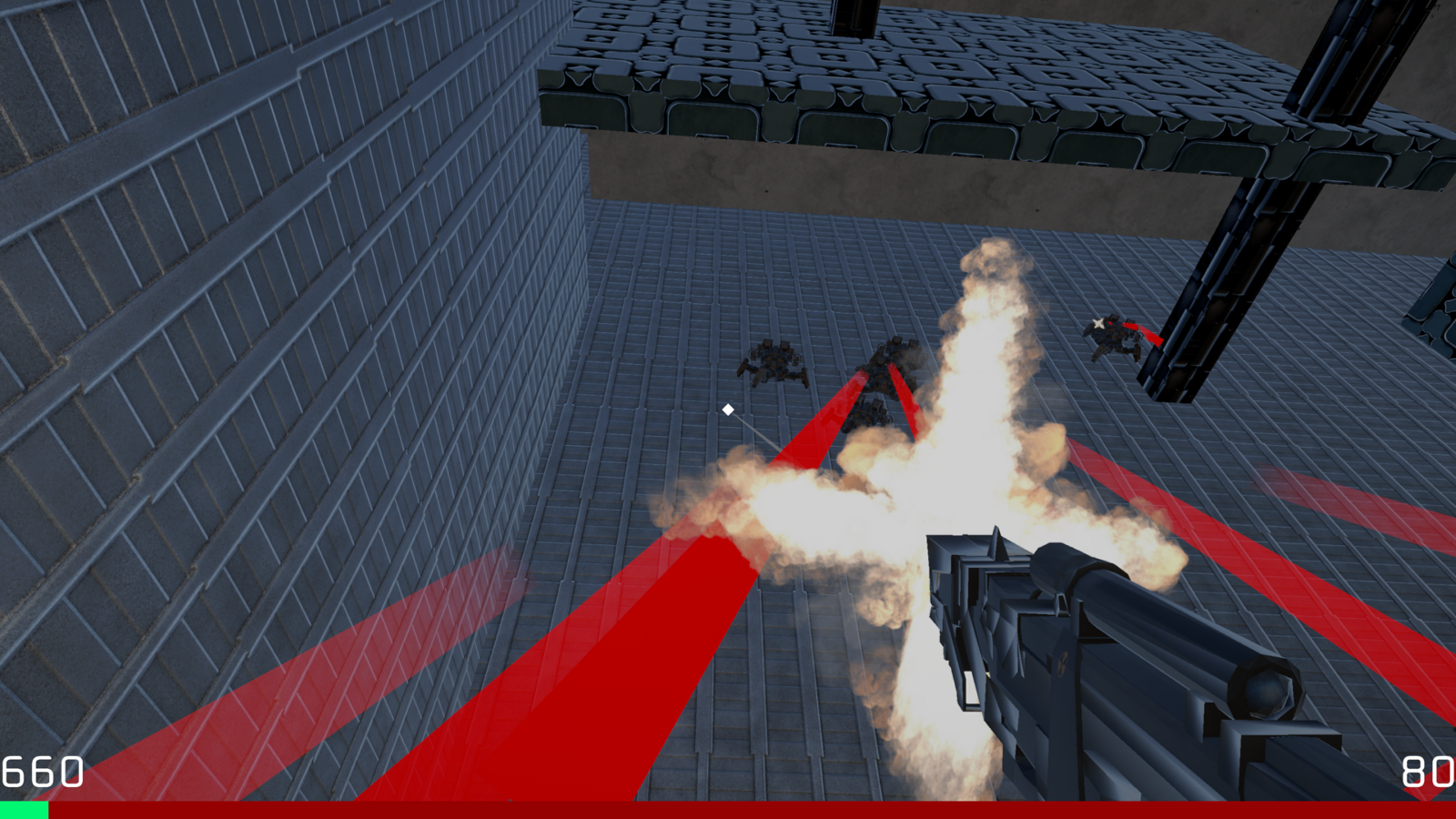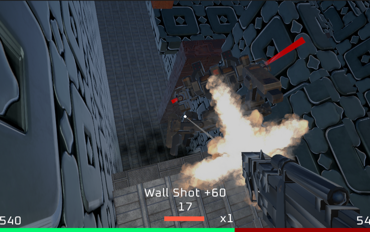 The goal of the game is to earn as many points as possible before you inevitably run out of health and die. Earn points by chaining different kinds of bot kills into a combo. Explore the movement options to kill enemies in interesting ways and find unique "tricks." For example, killing an enemy while sliding is worth more than killing them while standing.
